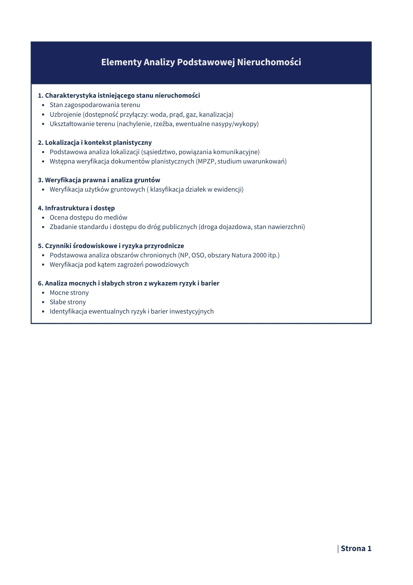Dzięki analizie zyskasz pewność, że działka nadaje się pod Twoją inwestycję i nie zaskoczy Cię ukrytymi kosztami.