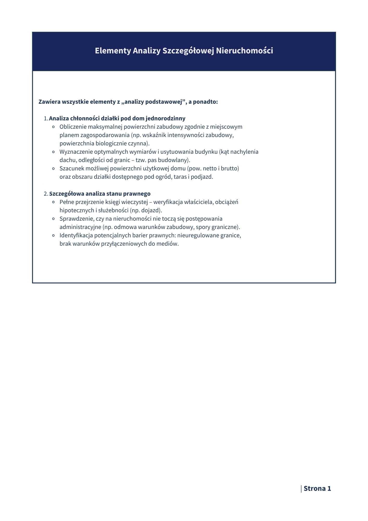 Dla osób, które chcą kupić działkę pod konkretną inwestycję (dom jednorodzinny, dom rekreacyjny, zabudowa pod wynajem) lub posiadają już grunt i chcą sprawdzić, czy można tam zrealizować swój plan.